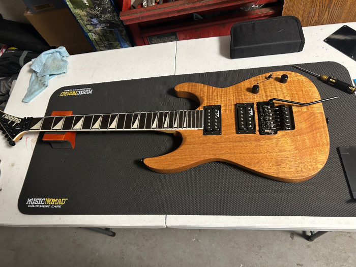 It has been a long ride so to speak on this project. But, it was well worth it I spent the entirety of Wednesday morning finishing this project. I had put new on strings, stretched them out.. followed by intonating the guitar and setting the up the floyd rose bridge.